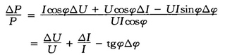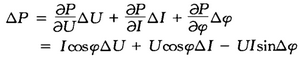 當U、I、φ變化很小時,有功功率變化量△P相對當U、I、φ未變化時P的變化率為: