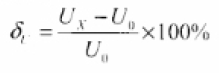 用標(biāo)準(zhǔn)源法(其允許誤差應(yīng)優(yōu)于被監(jiān)測儀允許誤差的1/5),對測試儀的每相分別進(jìn)行試驗(yàn)。在測試儀的每個(gè)量程范圍內(nèi)均勻選擇5個(gè)測量點(diǎn),按照圖1所示接線,分別讀取標(biāo)準(zhǔn)表的示值U0和測試儀的示值UX,按下式1計(jì)算電壓的測量誤差