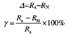 設(shè)標(biāo)準(zhǔn)表的顯示值(實(shí)際值)為IN,被檢表的顯示為IX,則被檢表的絕對(duì)誤差為:
