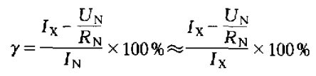 設(shè)測得標(biāo)準(zhǔn)電阻兩端電壓實(shí)際值為UN,標(biāo)準(zhǔn)電阻實(shí)際值為RN,被檢表顯示值為IX,則回路電流實(shí)際值為: