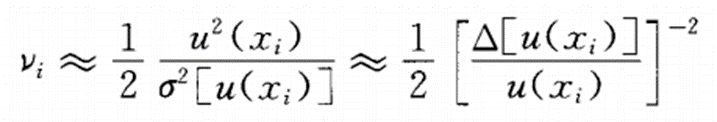 根據(jù)經(jīng)驗,按所依據(jù)的信息來源的可信程度來判斷u(xi)的相對標準不確定度Δ[u(xi)]/u(xi)表中列出了按公式計算出的自由度νi值。