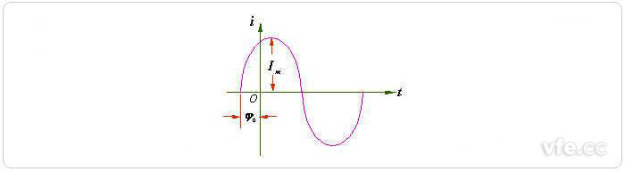 式中i表示交流電流的瞬時(shí)大小,稱(chēng)為瞬時(shí)值。Im表示正弦電流振幅的大小,稱(chēng)為最大值。ω表示正弦電流的角頻率,φ0表示正弦電流的初相位。ω、φ0及Im是表示正弦交流電的三要素,也是區(qū)分不同正弦電流的依據(jù)。